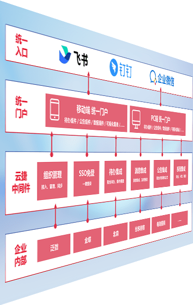 对协作平台提供支持服务,,,支持企业应用与协作平台对接,,,包含组织同步、、、、消息集成、、、、待办集成等。。。支持目前主流的协作平台:钉钉、、、企微和飞书。。。